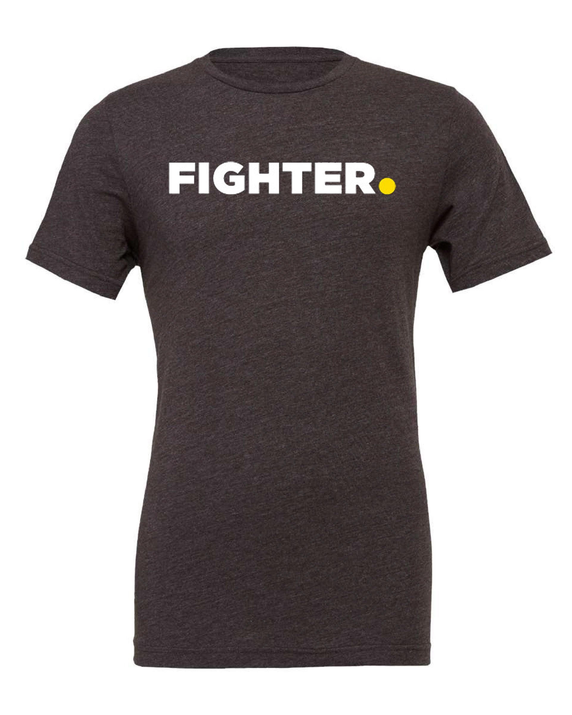 Show your strength in style. This soft, dark grey tee features the word "Fighter" boldly across the chest—an empowering nod to your courage and resilience.